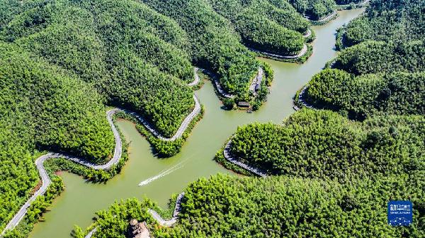 游客在貴州省赤水竹海國(guó)家森林公園內(nèi)游玩(2020年6月25日攝,無(wú)人機(jī)照片)。新華社記者 陶亮 攝