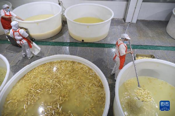 2022年11月30日,工人在貴州紅赤水集團(tuán)有限公司車間內(nèi)生產(chǎn)竹筍食品。新華社記者 劉續(xù) 攝