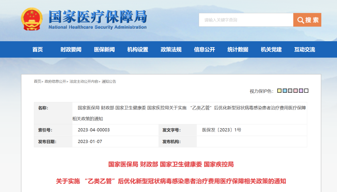 1月7日,國家醫(yī)保局、財政部、國家衛(wèi)生健康委、國家疾控局四部門聯(lián)合發(fā)布《關(guān)于實施 “乙類乙管”后優(yōu)化新型冠狀病毒感染患者治療費用醫(yī)療保障相關(guān)政策的通知》(以下簡稱《通知》)。