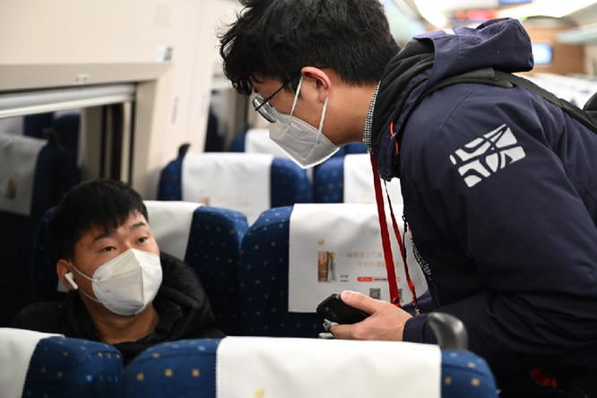 同車的孫先生則要趕往石家莊。在鐵路部門工作的他為了支援春運(yùn)工作起了個(gè)大早,剛接受完記者采訪就閉上眼睛休息了起來。“這次疫情防控政策優(yōu)化調(diào)整后,好多人都選擇回家過年,希望我的工作可以幫助到大家?!睂O先生說。