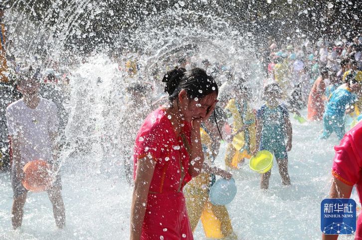 ↑1月25日,游客在西雙版納傣族園景區(qū)參加“天天潑水節(jié)”活動(dòng)。新華社發(fā)(李云生 攝)