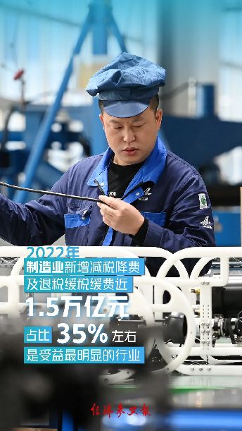 一是以“真金白銀”有效緩解了企業(yè)經(jīng)營(yíng)壓力。稅務(wù)總局對(duì)10萬(wàn)戶重點(diǎn)稅源企業(yè)調(diào)查顯示,2022年企業(yè)每百元營(yíng)業(yè)收入稅費(fèi)負(fù)擔(dān)下降2.7%,其中受疫情影響較大的交通運(yùn)輸業(yè)、住宿餐飲業(yè)分別下降15.4%和14.2%,負(fù)擔(dān)顯著減輕。