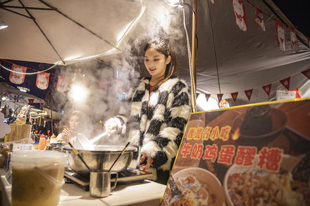 “集市的露營區(qū)域很受年輕人歡迎,坐在帳篷里聚會讓人感覺很溫馨。”創(chuàng)業(yè)者陳苗曾是一名瑜伽老師,如今她在集市經(jīng)營著一間主打手工湯圓的攤位。