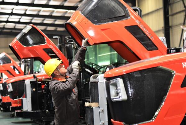 2月13日,在湖南省郴州市高新區(qū)一電機公司生產車間,工人在安裝拖拉機引擎蓋密封條。各地企業(yè)加緊生產,力爭實現(xiàn)首季“開門紅”。
