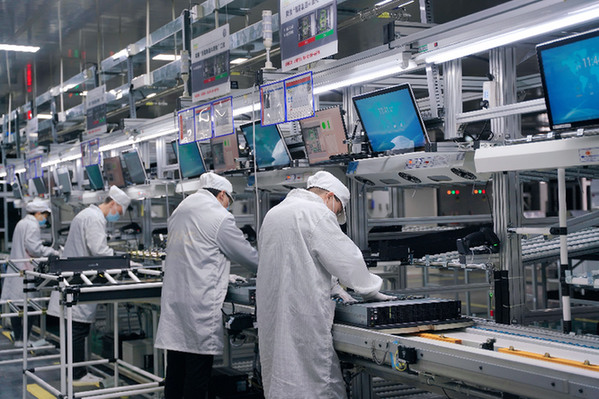 在位于許昌的黃河科技集團(tuán)信息產(chǎn)業(yè)發(fā)展有限公司,生產(chǎn)車間內(nèi),33歲的女工溫艷麗正在對(duì)該公司生產(chǎn)的服務(wù)器電路板進(jìn)行內(nèi)存條組裝。