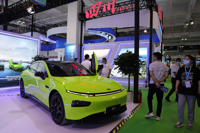 圖為在第28屆“蘭洽會(huì)”上拍攝的小鵬新能源汽車。 新華社記者 張智敏 攝