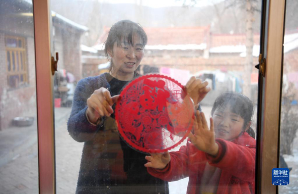 在位于大山深處的寧夏固原市隆德縣鳳嶺鄉(xiāng)于河村,村民馬鳳艷和女兒一起貼窗花(2022年1月28日攝)。近年來,在鄉(xiāng)村振興等戰(zhàn)略助力下,于河村村容村貌發(fā)生巨大變化。新華社記者 王鵬 攝