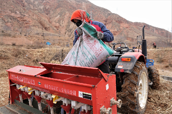 海東市民和回族土族自治縣官亭鎮(zhèn)鮑家村,農(nóng)戶正在備耕。