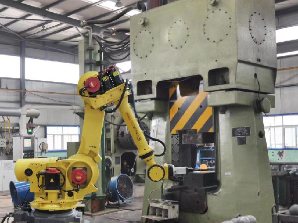 在鋼諾公司車間,一臺機(jī)器人站在裁切、沖壓兩個工序間,用鋼鉗轉(zhuǎn)移8公斤重的鋼段,連續(xù)10小時重復(fù)一個動作,每天可搬運(yùn)40噸原料,其效率、安全性和精準(zhǔn)度遠(yuǎn)超人工。