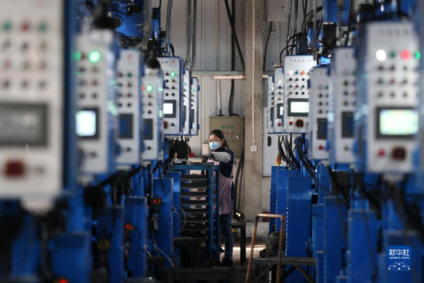 1月31日,工人在重慶市黔江區(qū)工業(yè)園區(qū)一電子科技公司生產車間加工電子元件。新華社發(fā)(楊敏攝)