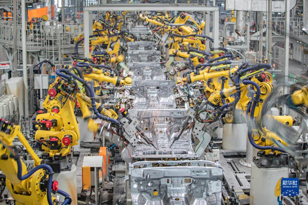 3月1日,在長城汽車重慶永川生產基地焊裝車間,智能化焊接機器人在進行焊接作業(yè)。新華社記者 黃偉 攝