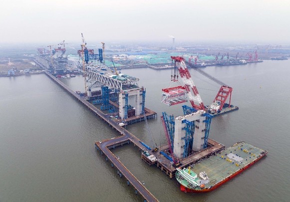 常泰長江大橋是一座公鐵兩用斜拉橋,連接江蘇省常州市與泰州市。建成后,主航道橋主跨達(dá)1176米,將成為世界上跨度最大的斜拉橋。