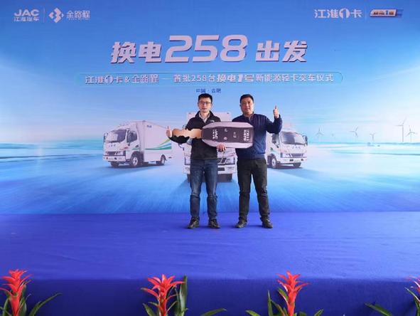 江淮1卡將“換電1號(hào)”車輛金鑰匙交付全路程集團(tuán)