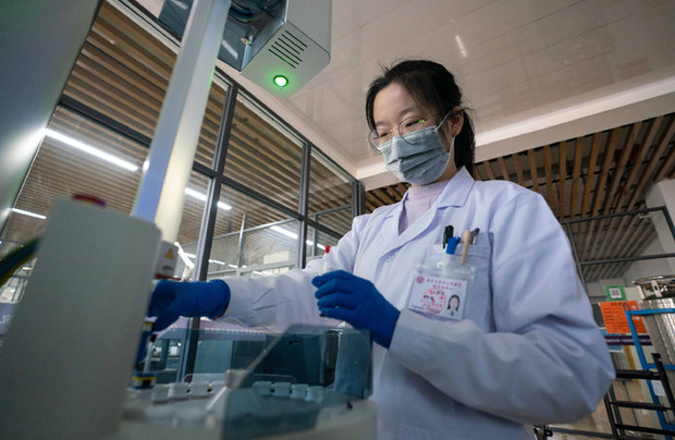 3月28日,南開大學(xué)—滄州渤海新區(qū)綠色化工研究院分析檢測中心工作人員在進(jìn)行樣品檢測前準(zhǔn)備工作。新華社記者 駱學(xué)峰 攝
