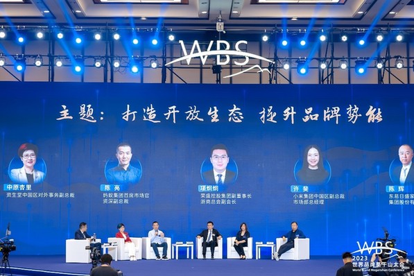 圖為2023世界品牌莫干山大會(huì)開(kāi)幕式的“打造開(kāi)放生態(tài),提升品牌勢(shì)能”高端對(duì)話環(huán)節(jié)