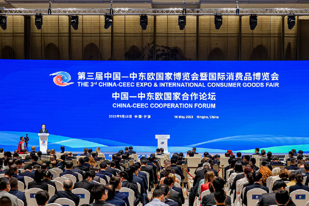 5月16日,第三屆中國(guó)—中東歐國(guó)家博覽會(huì)暨國(guó)際消費(fèi)品博覽會(huì)在寧波啟幕。本屆博覽會(huì)以“深化務(wù)實(shí)合作、攜手共向未來(lái)”為主題。 (主辦方供圖)