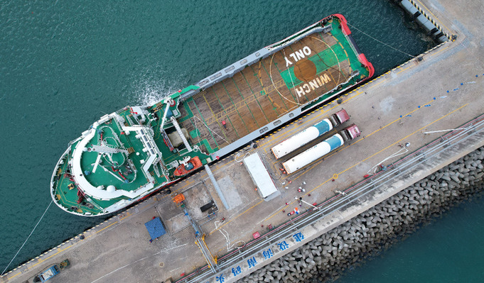 由中國海油氣電集團建設(shè)運營的我國首座沿海液化天然氣(LNG)船舶加注站。新華社記者 楊冠宇 攝