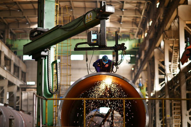 工人在哈電集團(tuán)哈爾濱鍋爐廠有限責(zé)任公司生產(chǎn)車間內(nèi)作業(yè)。新華社記者 王建威 攝