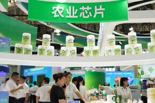六月十五日,第三十二屆哈爾濱國際經(jīng)濟(jì)貿(mào)易洽談會在哈爾濱國際會展體育中心開幕。據(jù)悉,本屆哈洽會共有三十八個(gè)國家和地區(qū)的一千四百多家企業(yè)參展。圖為在北大荒集團(tuán)展區(qū),參會者在了解展品情況。