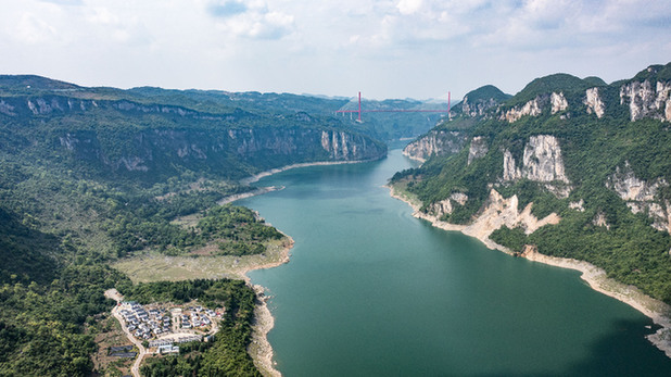 貴州省畢節(jié)市烏江源百里畫(huà)廊景色(2022年5月6日攝,無(wú)人機(jī)照片)。新華社記者 陶亮 攝