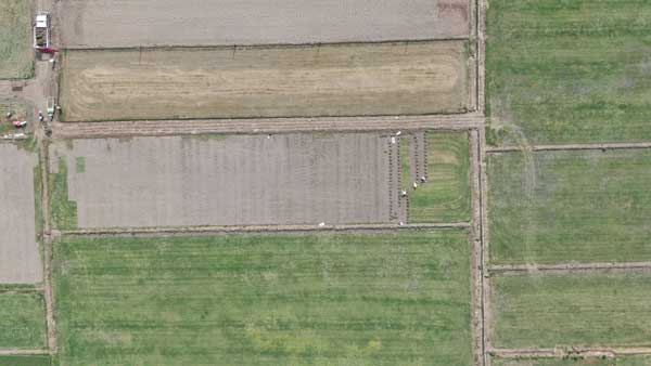 江西一個(gè)村莊的草皮收割現(xiàn)場(chǎng)。(無(wú)人機(jī)拍攝)