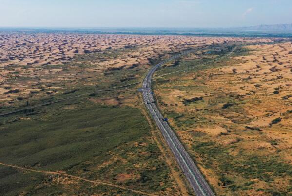 夏日時(shí)節(jié),內(nèi)蒙古自治區(qū)杭錦旗境內(nèi)的穿沙公路綠意盎然,綠色沿著道路前行,并向兩旁的沙地鋪展,猶如一條條“綠色動(dòng)脈”在庫(kù)布其沙漠中綿延。穿沙公路不僅給昔日被沙漠阻隔而出行無路的農(nóng)牧民帶來便利,也為實(shí)施國(guó)家防沙治沙重點(diǎn)工程、企業(yè)產(chǎn)業(yè)化投資治理庫(kù)布其沙漠打下了堅(jiān)實(shí)的基礎(chǔ)。