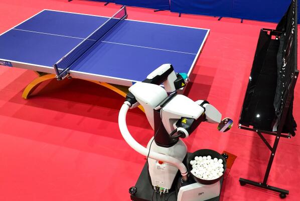 圖為7月22日在成都高新體育中心多功能館拍攝的乒乓球訓練機器人。該設(shè)備通過模擬人體動作發(fā)球,方便接球者對發(fā)球動作進行觀察和預(yù)判。同時可以自定義發(fā)球的速度、旋轉(zhuǎn)和落點,針對訓練需求設(shè)定多種打法的訓練動作體系,幫助運動員高效精準調(diào)整訓練。