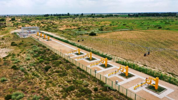 中國(guó)石油長(zhǎng)慶油田蘇里格南作業(yè)分公司的無(wú)人值守智能遠(yuǎn)程開(kāi)關(guān)叢式井組(無(wú)人機(jī)照片)。記者 王鵬 攝