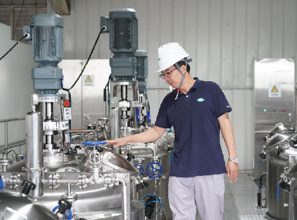 “和傳統(tǒng)的化工生產(chǎn)線相比,我們的生產(chǎn)線顯得過于簡潔,這恰恰是優(yōu)勢?!蔽?gòu)工廠董事長徐絢明指著背后的生產(chǎn)線向記者介紹,因為不用傳統(tǒng)化工產(chǎn)業(yè)的嚴格無菌、高壓環(huán)境,對水和能源的消耗也降低50%以上。