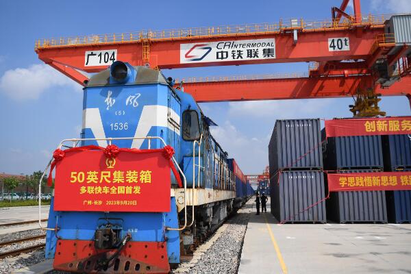 國(guó)內(nèi)首創(chuàng)50英尺集裝箱鐵路多聯(lián)快車始發(fā)