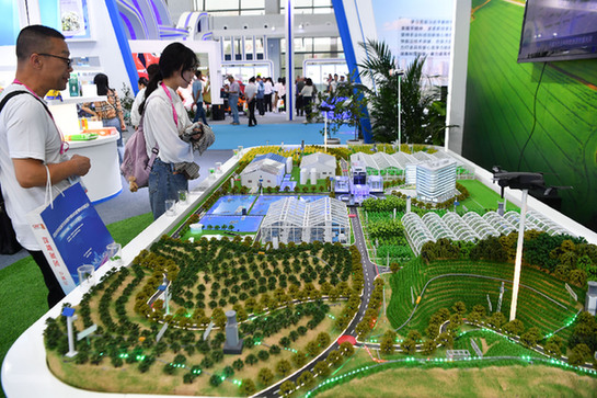 圖為觀眾在楊凌農(nóng)高會(huì)參觀智慧育種沙盤。