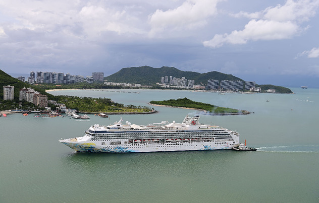 9月25日,發(fā)自香港、搭載1800多名旅客的“名勝世界壹號(hào)”郵輪順利靠泊三亞國(guó)際郵輪港碼頭,標(biāo)志著三亞口岸國(guó)際郵輪航線正式復(fù)航。圖為當(dāng)日“名勝世界壹號(hào)”郵輪緩緩駛進(jìn)三亞港。