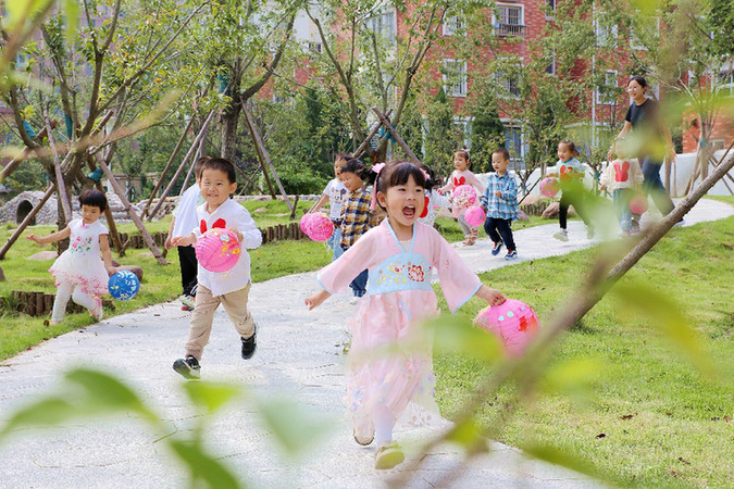 中秋臨近,各地舉行多種民俗活動喜迎佳節(jié)。圖為9月26日山東省青島西海岸新區(qū)金河路幼兒園小朋友提著自制中秋花燈游園。