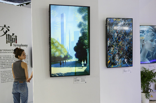 人工智能的發(fā)展,與知識(shí)產(chǎn)權(quán)發(fā)生著緊密的關(guān)系。圖為今年上海舉行的世界人工智能大會(huì)中主題為“交響”的AIGC藝術(shù)展。資料照片