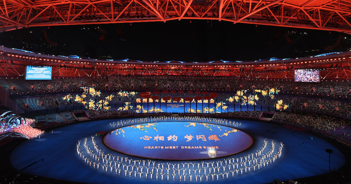 10月22日拍攝的亞殘運(yùn)會(huì)開幕式現(xiàn)場(chǎng)。當(dāng)日,杭州第4屆亞洲殘疾人運(yùn)動(dòng)會(huì)開幕式在杭州奧體中心體育場(chǎng)舉行。