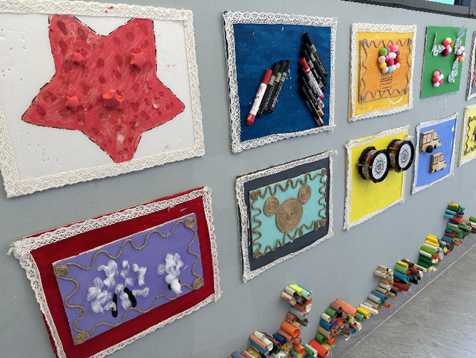 廣西南寧市興寧區(qū)高爾德托育園老師與孩子共同創(chuàng)作的作品。記者 陳一帆 攝