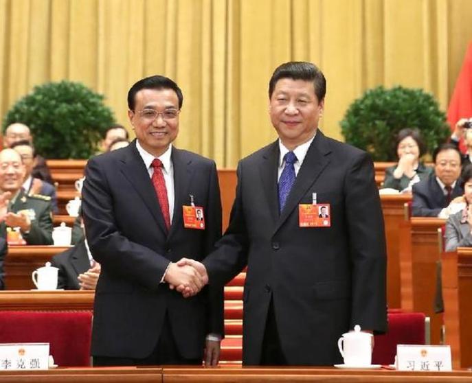2013年3月15日,第十二屆全國(guó)人民代表大會(huì)第一次會(huì)議在北京人民大會(huì)堂舉行第五次全體會(huì)議。會(huì)議經(jīng)過(guò)投票表決,決定李克強(qiáng)為中華人民共和國(guó)國(guó)務(wù)院總理。這是習(xí)近平同志和李克強(qiáng)同志親切握手。