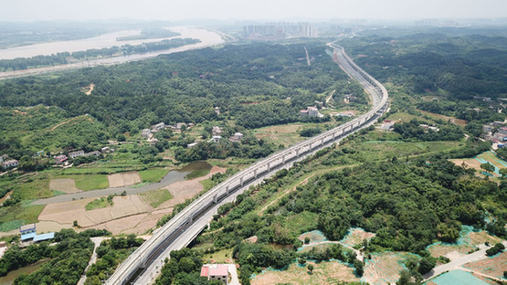 2023年6月28日,長(zhǎng)株潭城際軌道交通西環(huán)線(xiàn)一期工程開(kāi)通運(yùn)營(yíng)。這是湖南省首條跨市城市軌道交通線(xiàn)路,開(kāi)通后長(zhǎng)沙和湘潭之間的通勤時(shí)間縮短至20分鐘左右,極大方便了兩市市民跨市出行。圖為當(dāng)日拍攝的長(zhǎng)株潭城際軌道交通西環(huán)線(xiàn)一期工程的高架軌道(無(wú)人機(jī)照片)。記者 陳澤國(guó) 攝