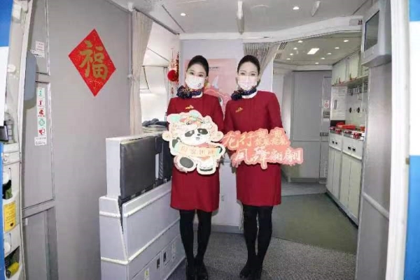 “今天是中國傳統(tǒng)的除夕夜,非常高興能和大家相聚在本次國航春節(jié)主題航班上,在萬米高空共度這個(gè)團(tuán)圓中國年!”2月9日,國航CA931航班的機(jī)長廣播里傳來了新春祝福。當(dāng)天,這架“龍行龘龘 鳳舞翩翩”主題航班從北京飛往法蘭克福,這也是中國農(nóng)歷新年被列為聯(lián)合國假日后,國航首次在國際航班舉辦的春節(jié)主題航班。