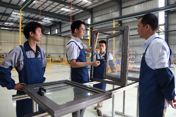 在位于廣東清遠的貝克洛幕墻門窗系統(tǒng)有限公司工廠內(nèi),工人正在對門窗質(zhì)量進行檢測?!∈茉L者供圖