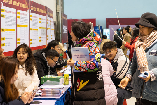 還未及正月十五,位于安徽阜陽的阜陽市體育中心內已經熱鬧非凡。外面雪花紛飛,室內卻早已擠滿了人。一大早,市民彭先生和妻子劉女士就來到這里,夫婦二人在外打拼多年,看到新能源企業(yè)發(fā)出的招聘中有適合自己的崗位,希望能在家門口謀個好差事?!安槐纫郧埃F在家里就業(yè)機會多了,待遇也好不少?!迸硐壬f。