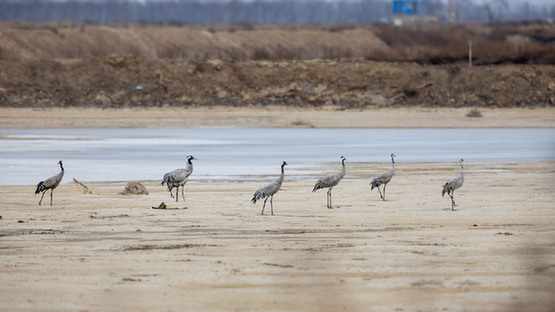 2月4日,在河北省黃金海岸保護區(qū)拍攝的國家二級保護動物灰鶴。(受訪單位供圖)