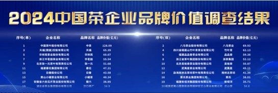 5月10日,“2024中國茶品牌建設論壇”在上海舉辦,中國茶葉流通協(xié)會、中國經濟信息社發(fā)布了中國茶品牌價值調查結果,中茶公司以128.09億再獲“2024中國茶品牌Top50”榜首,成為唯一品牌價值過百億企業(yè)。