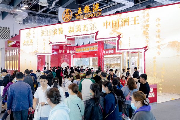 圖為中國(guó)品牌博覽會(huì)上的五糧液展廳現(xiàn)場(chǎng)