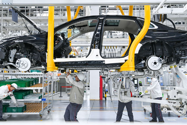 ——搶抓機(jī)遇,助力“汽車城”駛?cè)胄履茉雌嚠a(chǎn)業(yè)快車道。東風(fēng)大街上,“第一汽車制造廠奠基紀(jì)念”漢白玉基石巍然矗立,廠區(qū)的紅墻保留著建廠時(shí)的風(fēng)貌。而走入一汽紅旗繁榮工廠的廠門(mén),取代“懷舊風(fēng)”的,是一派現(xiàn)代化圖景:車間寬敞明亮,無(wú)人小車穿梭其間,靈活避障,自動(dòng)機(jī)械臂手舞足蹈,緊張忙碌,工人操作聚精會(huì)神,有條不紊。
