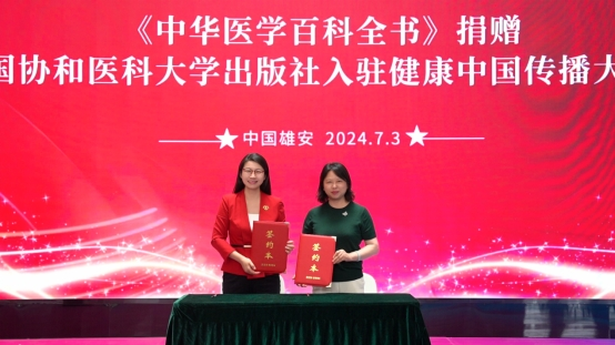 捐贈儀式之后,中國協(xié)和醫(yī)科大學出版社與雄安新區(qū)未來健康傳播中心簽署戰(zhàn)略合作協(xié)議。作為正式簽約入駐健康中國傳播大廈的第一家“中字頭”單位,中國協(xié)和醫(yī)科大學出版社將進一步推進院士進駐大廈健康傳播院士基地,將雙方在各自領域的領先優(yōu)勢和共同使命結合在一起形成“權威+傳播”合力,聯(lián)合生產(chǎn)和輸出更具權威性的健康知識和健康節(jié)目,進一步推動形成融媒體環(huán)境下的出版新業(yè)態(tài)。