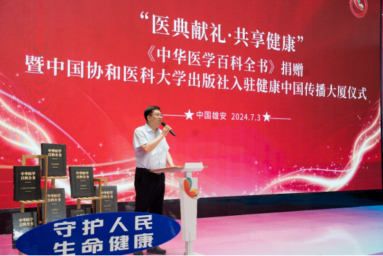 作為著作發(fā)起人之一的劉德培院士代表中國協(xié)和醫(yī)科大學出版社向雄安新區(qū)健康中國傳播大廈正式捐贈中國首部“醫(yī)學辭典”——《中華醫(yī)學百科全書》,雄安新區(qū)宣傳網(wǎng)信局副局長黨建偉代表新區(qū)接受捐贈。