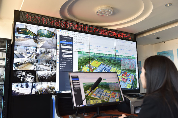 智能化手段正在助力園區(qū)對(duì)排放進(jìn)行精準(zhǔn)管控。在園區(qū)化工產(chǎn)業(yè)園應(yīng)急指揮中心,化工園區(qū)管理辦公室主任孫宇熙輕點(diǎn)鼠標(biāo),便可查看園區(qū)內(nèi)化工企業(yè)的排放情況,地下水、地表水、廢水、廢氣等指標(biāo)一目了然,實(shí)現(xiàn)園區(qū)應(yīng)急、消防、環(huán)保、車輛人員等數(shù)字化管理。“全縣從各部門遴選7名化工專業(yè)人才到園區(qū)工作,通過云管理平臺(tái),幫助園區(qū)進(jìn)行能耗、評(píng)估、運(yùn)營等的數(shù)據(jù)監(jiān)測(cè)以及入駐企業(yè)創(chuàng)新指數(shù)等的跟蹤監(jiān)測(cè)。”孫宇熙說。