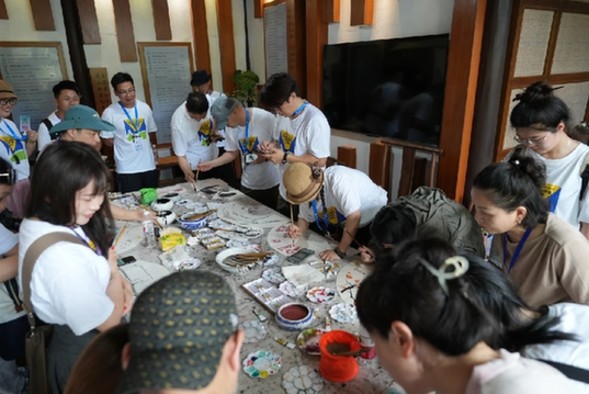 7月6日,來自北京電影學院、杭州師范大學等23所高校54名師生走進創(chuàng)業(yè)賽點村鄣吳村,領略吳昌碩大師的藝術人生。現(xiàn)場還開展了賽事沙龍分享,與會人員針對賽題踴躍發(fā)言,從賽題思路、答題技巧到成果轉(zhuǎn)化都提出了自己的想法,豐富了賽事推廣。