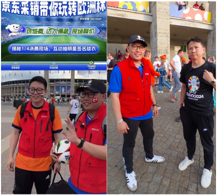 比賽當(dāng)天,京東采銷早早就來到柏林奧林匹克體育場,通過直播帶領(lǐng)大家領(lǐng)略了球場外的氛圍、品嘗球場周邊的德國當(dāng)?shù)仄【?、介紹荷蘭和土耳其兩支球隊此前的表現(xiàn),并拿出了迷你足球裝備與現(xiàn)場球迷共同切磋球技。同時,針對直播間觀眾關(guān)于球場內(nèi)外的問題,京東采銷也進行了互動解答,讓大家在屏幕前也能身臨其境地感受到歐洲杯的火熱氛圍。